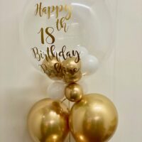 XL gepersonaliseerde ballon met 3 chrome ballonnen aan een ballongewicht, natuurlijk behandeld met Hi-Float voor een langere zweefduur.