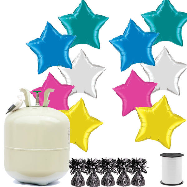 Helium pakket met 10 folie ster ballonnen, voor een lange zweefduur.